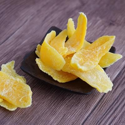 Sliced mangoes that have been dehydrated using several methods. Mangoes have a lower glycemic index and can be enjoyed by people suffering from diabetes. These delicious pieces are enriched with nutrients and have a longer shelf life. Just grab a packet and keep it in your office or home for your daily dose of healthy bites!